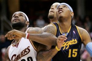 2003-04赛季,安东尼场均21分6.1篮板2.8助攻,掘金队最终43胜39负排名西部第8进入季后赛,詹姆斯场均20.9分5.5篮板5.9助攻,骑士队最终35胜47负未能进入季后赛。2003年最佳新秀评选,詹姆斯得分508分排名第一,安东尼得分403分排名第二。