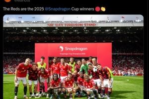 曼联官方社媒也晒出球队与冠军奖杯的大合影,配文写道:“红魔是2025年骁龙杯冠军!”